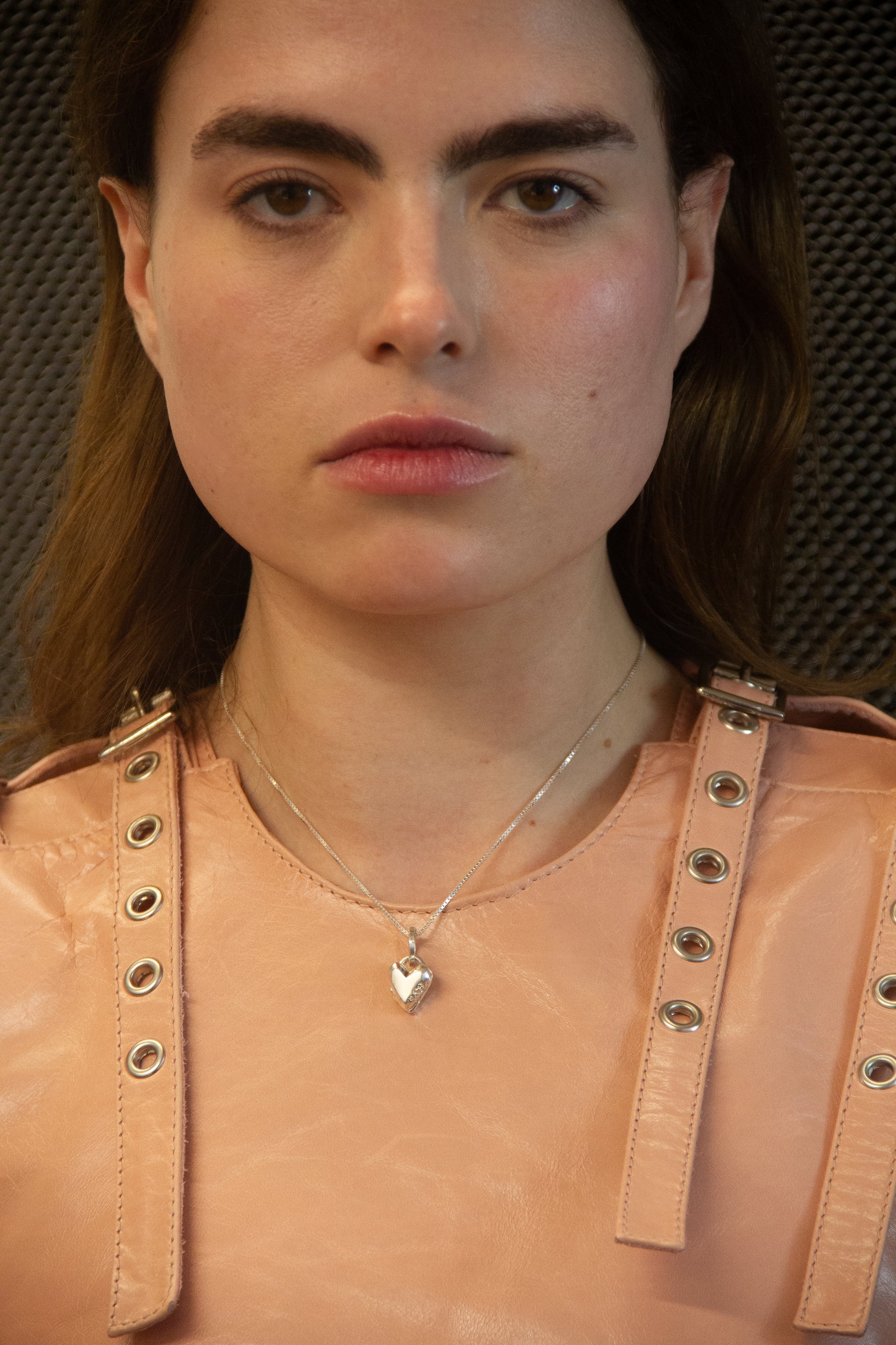 Available here with the Delicate Box Chain Necklet or the thicker Belcher Chain, or as a standalone piece to pair with any 012025 chain of your choice. Options include the Chainmaille Chain, Long Hearts Chain, Standard Curdled Chain and Bespoke Curdled Chain.